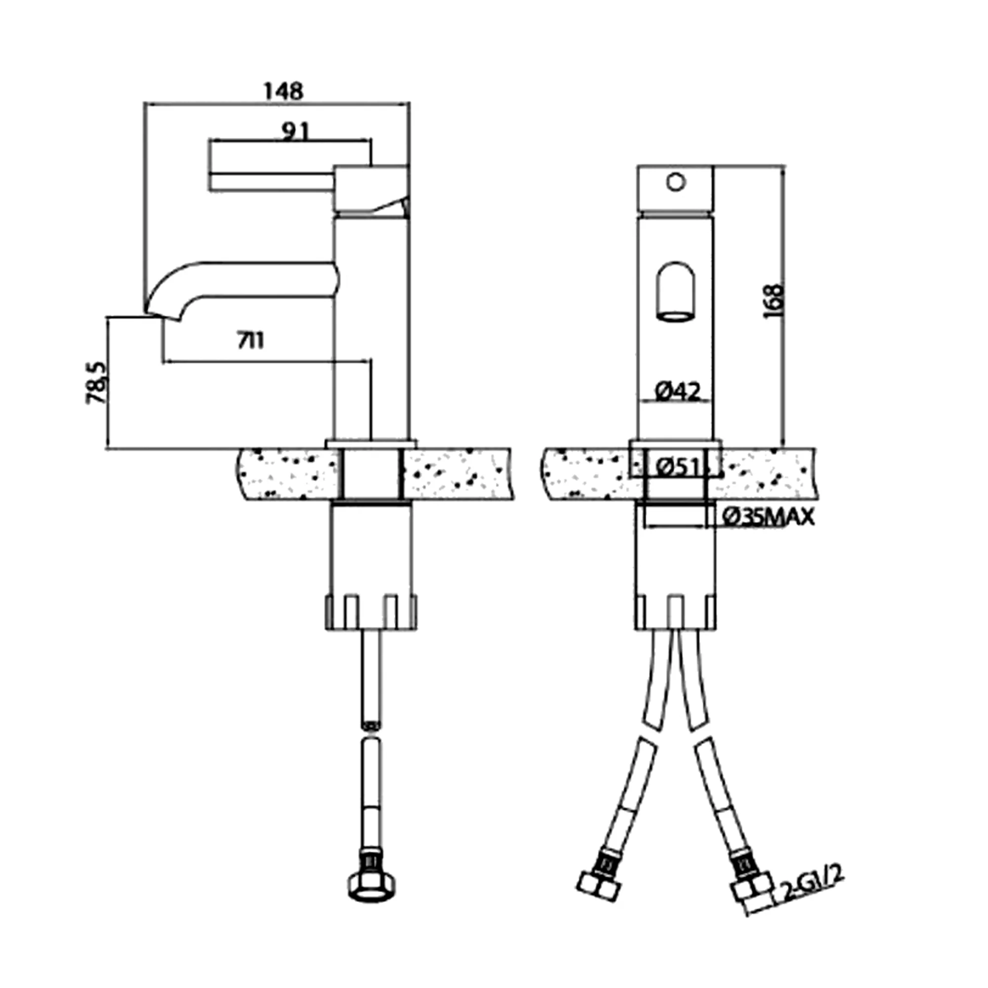 - Universal basin waste included, which is suitable for all slotted or unslotted basin wastes. The waste can be set to free flow or be used as a click waste.