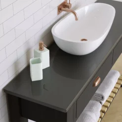 The Ashford range is the perfect balance between contemporary and traditional styling, with shaker style doors and elegant dusty grey colour, this timeless range will add character and depth to your bathroom. Create a seamless look, whilst getting the most out of every inch of your bathroom, with pre-assembled cabinets in a range of sizes, an efficient way to easily customise your space. Enduring, with maximum storage, bring a luxurious touch to your home that you can relax in clutter-free! The Ashford range is also available in dusty pink and kombu green.