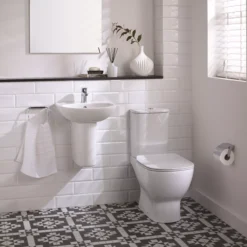 - Comes with Close-coupled pan, ceramic cistern and plastic seat