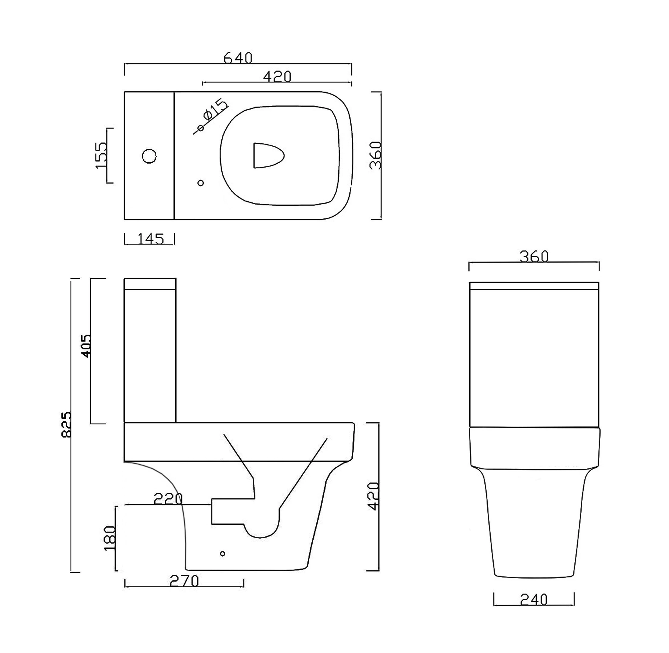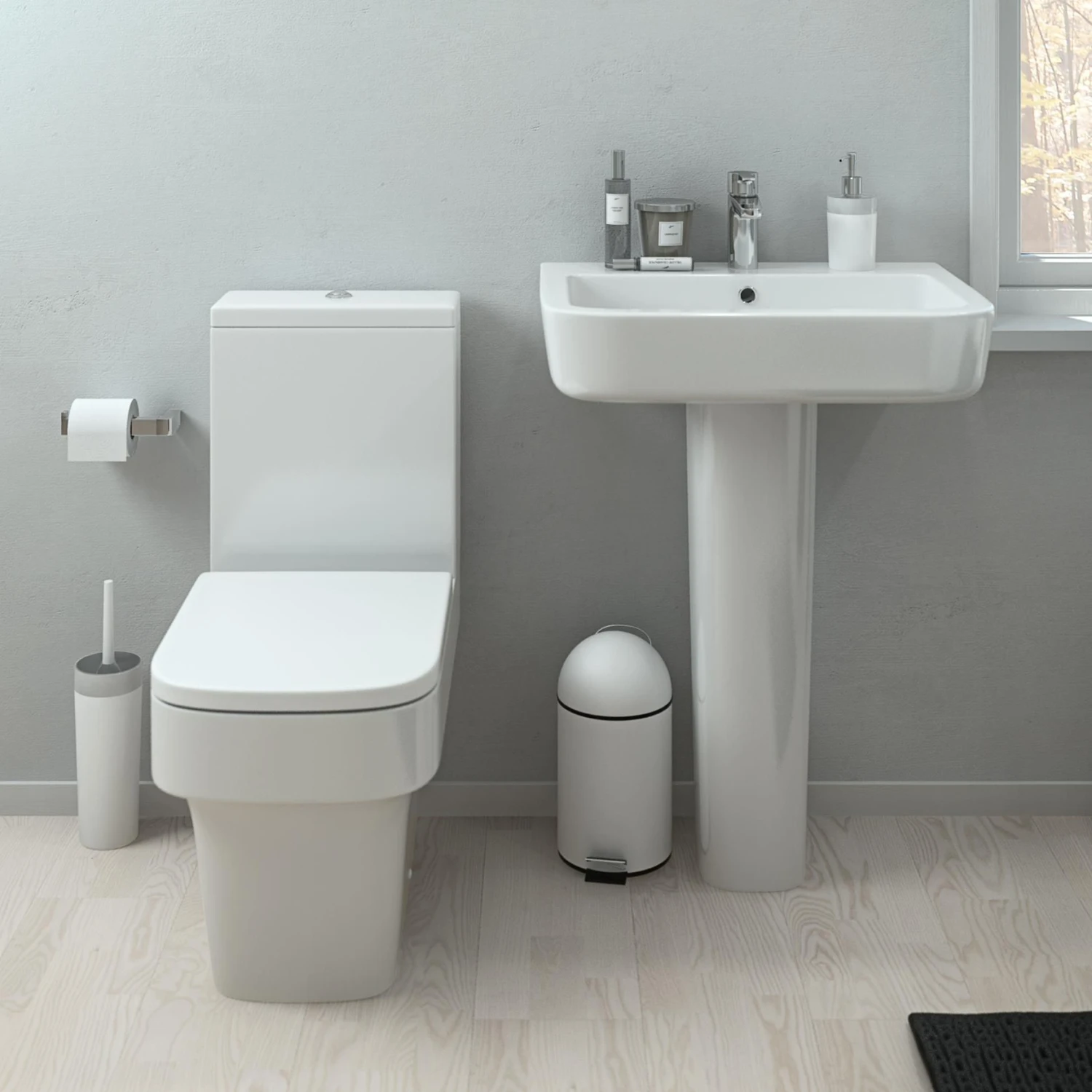 This close-coupled toilet from Cooke & Lewis’s Caldaro range comes with a soft close lid and white seat. It also includes dual flush.