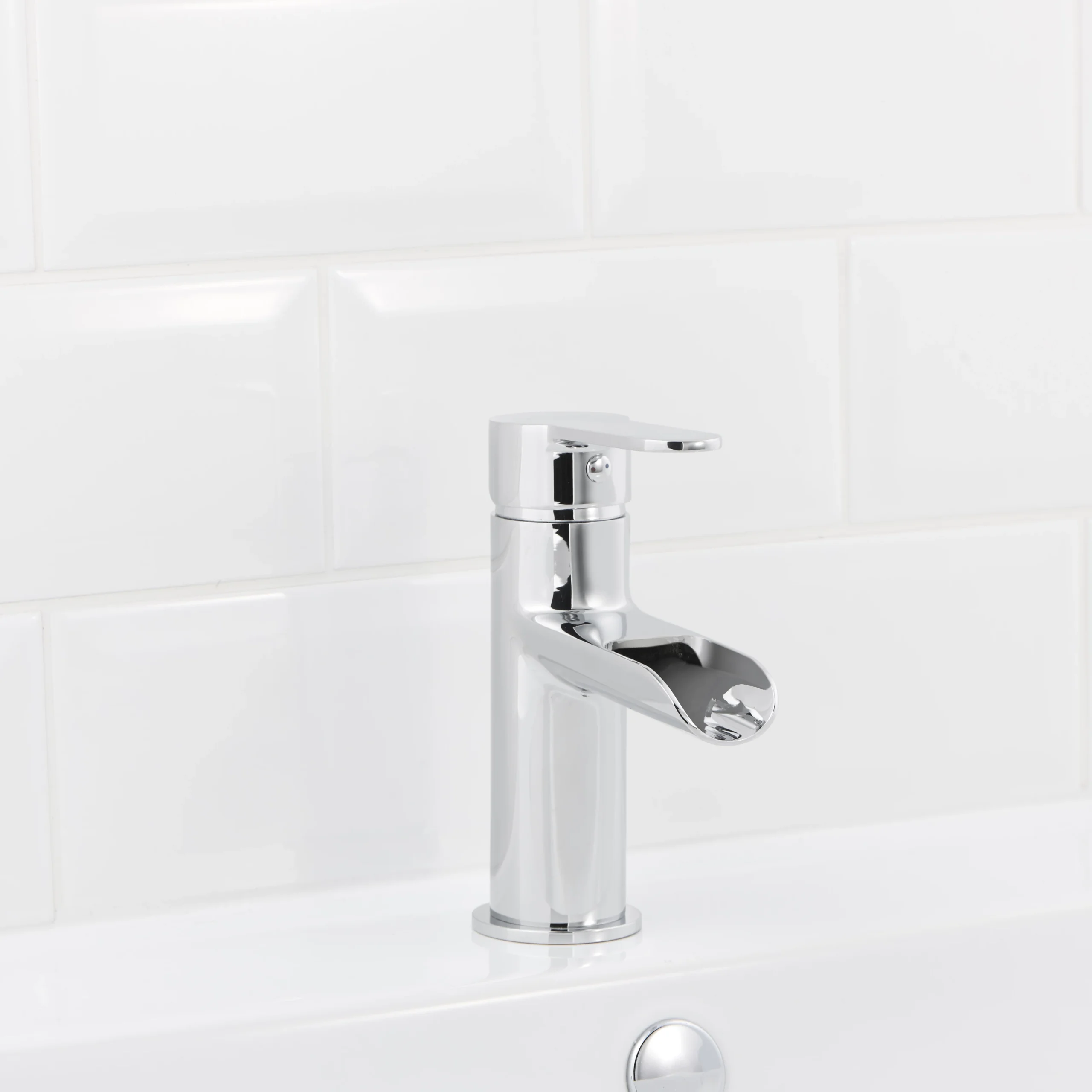 This modern style chrome single lever basin mixer from the Colina collection requires no additional purchases. All of our basin mixer taps come with flexible hoses and wastes. This tap is suitable for high and low pressure water systems.