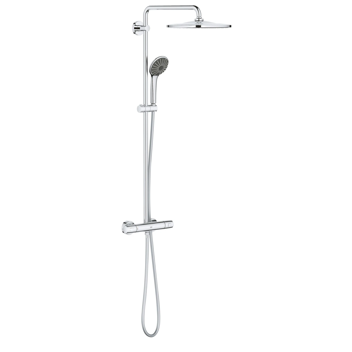 - Indulge in a special comfort zone with Grohe shower systems: this shower arm comes with a 180° swivel range, so you can direct the shower head to the centre of your cubicle or tub.