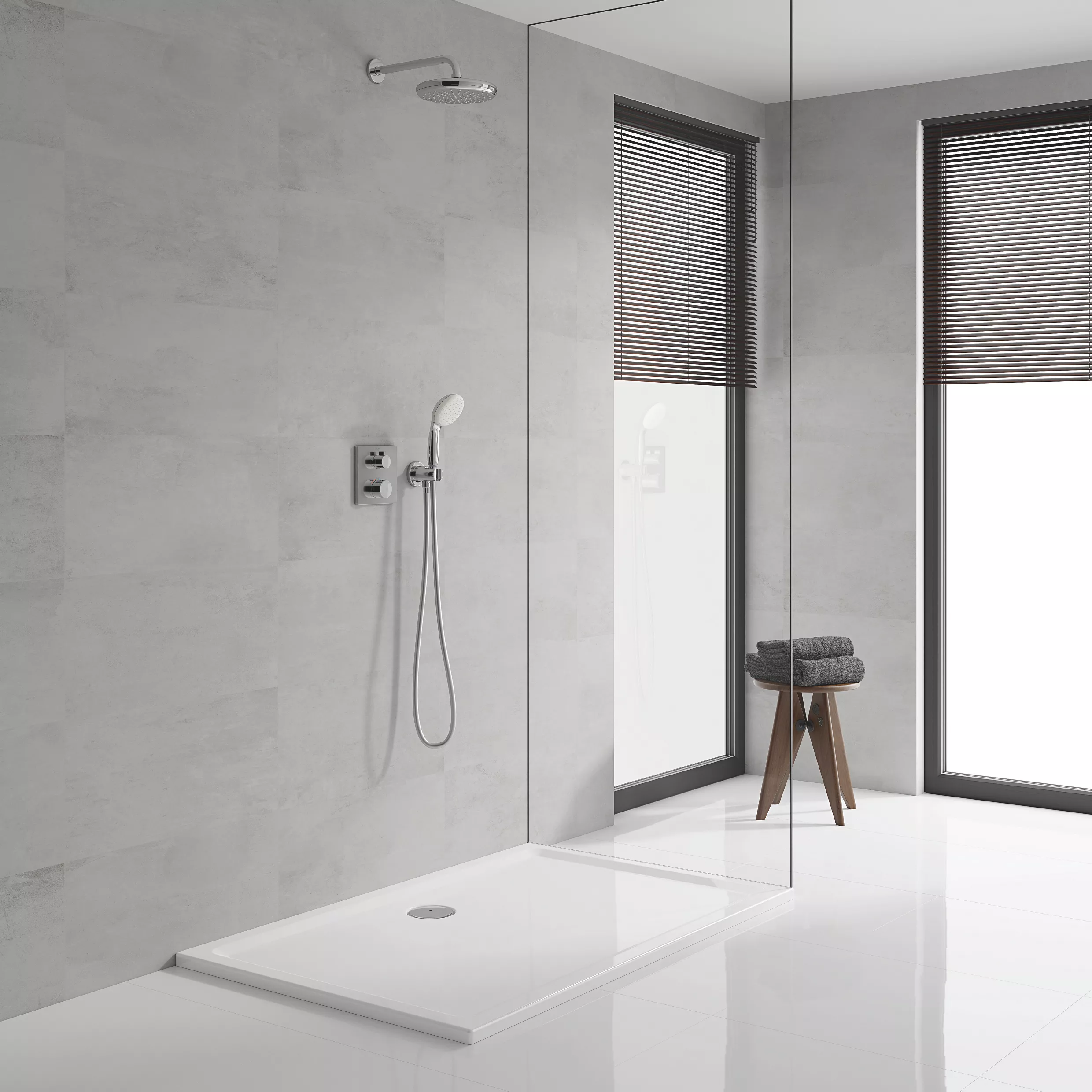 The Grohtherm Perfect Shower Set is the perfect all-in-one bundle. Features a sleek, slim style and user safety in perfect harmony. Universal rough-in box with bottom inlets for effortless installation.