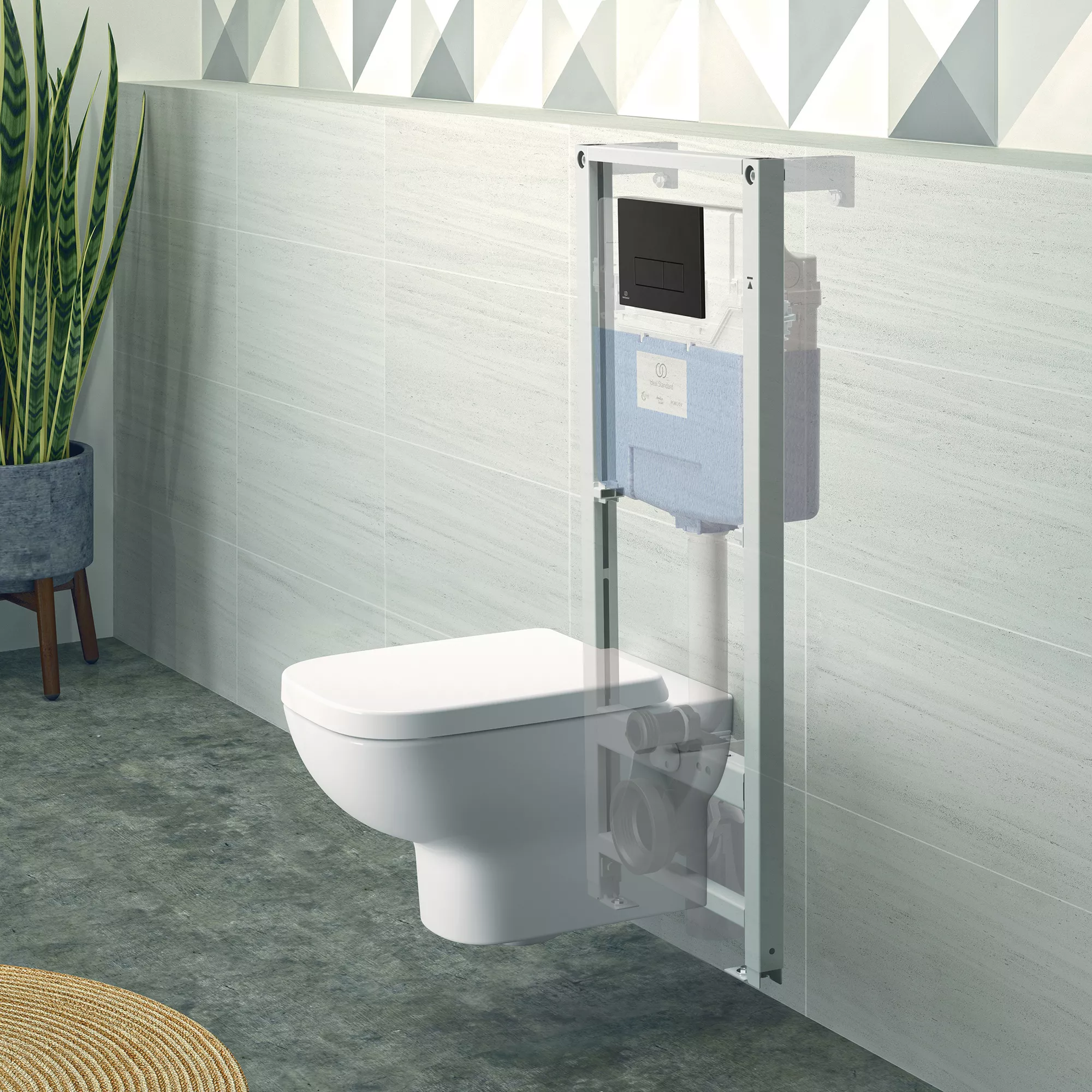 The Ideal Standard i.life A White Wall-hung Square Toilet Set is a stunning addition to any contemporary bathroom. The sleek, rimless design and soft close seat provide a stylish and practical solution for smaller spaces. This space-saving, wall-hung toilet set features a concealed cistern for a minimalist look. The dual flush provides a water-efficient 4 or 6 litre flush, helping you save money and the environment. The soft close seat gently lowers itself down with a whisper, avoiding noisy slams. For a modern, clutter-free bathroom, the Ideal Standard i.life A White Wall-hung Square Toilet Set is an ideal choice.